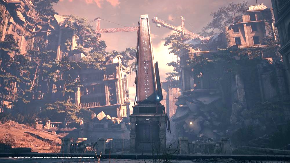 The game follows its protagonist and her allies on a mission to reclaim a ruined earth, and reveals its setting though the digitized "memories" of the people who once lived there. These memories, once recovered, can be uploaded to a massive collection known as Mother Sphere. Which is to say it's basically a game about digital preservation. In that spirit, an early mission sends the hero, Eve, searching for a Hall of Records in a ruined city, to eventually find this structure.